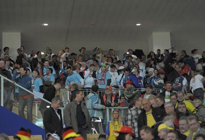 Slovenska reprezentanca ima na tribunah olimpijske dvorane v Innsbrucku tudi bučno podporo s tribun. Na tekmah slovenske izbrane vrste v Avstriji je veliko navijačev iz domovine, utrip med njimi pa je v svoj fotografski objektiv ujel Slavko Kolar.