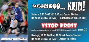 Podravka Vegeta bo nasprotnik rokometašic Krima Mercatorja v petem krogu skupine B v evropski ligi prvakinj. Tekma med slovenskimi in hrvaškimi prvakinjami bo v soboto, 5. novembra 2011, ob 17.30 v dvorani v Stožicah v Ljubljani.